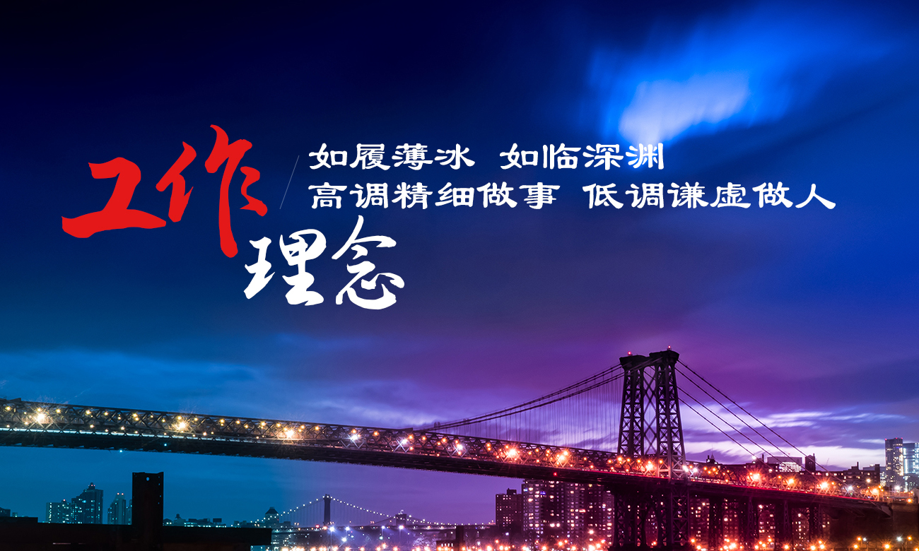 公司以建造合格建筑產(chǎn)品、助力國家建設為使命,以構建幸福企業(yè)為愿景。公司深知助力國家建設為使命所擔負的責任,故以“如履薄冰、如臨深淵、高調(diào)精細做事、低調(diào)謙虛做人”為工作理念,建立了完善的管理制度和質(zhì)量保障體系,以人為本,構建和諧環(huán)境。公司牢固樹立安全意識、文明意識、質(zhì)量意識、環(huán)境意識和精品意識。在公司質(zhì)量管理過程中貫徹“雙百”方針:即工程合格率100%,客戶滿意率100%。以“建設一項工程,樹好一個形象,多出一份誠信,廣交一方朋友”為公司經(jīng)營理念。